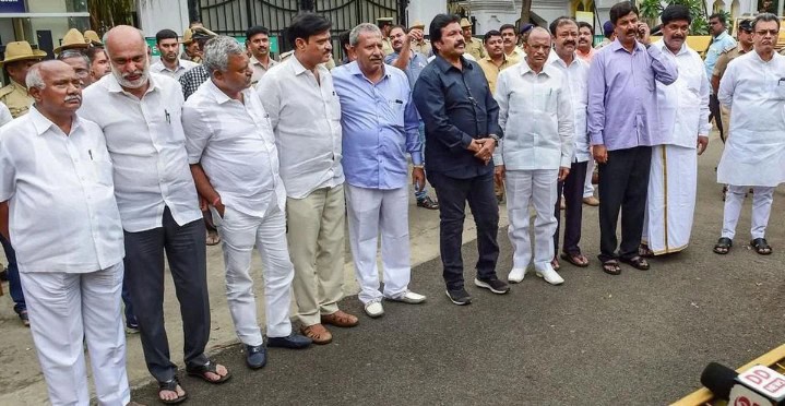 कांग्रेस ने मंगलवार को कर्नाटक के 14 बागी विधायकों को पार्टी विरोधी गतिविधियों के कारण निष्कसित कर दिया। इन विधायकों को कर्नाटक विधानसभा के तत्कालीन अध्यक्ष के.आर. रमेश ने अयोग्य